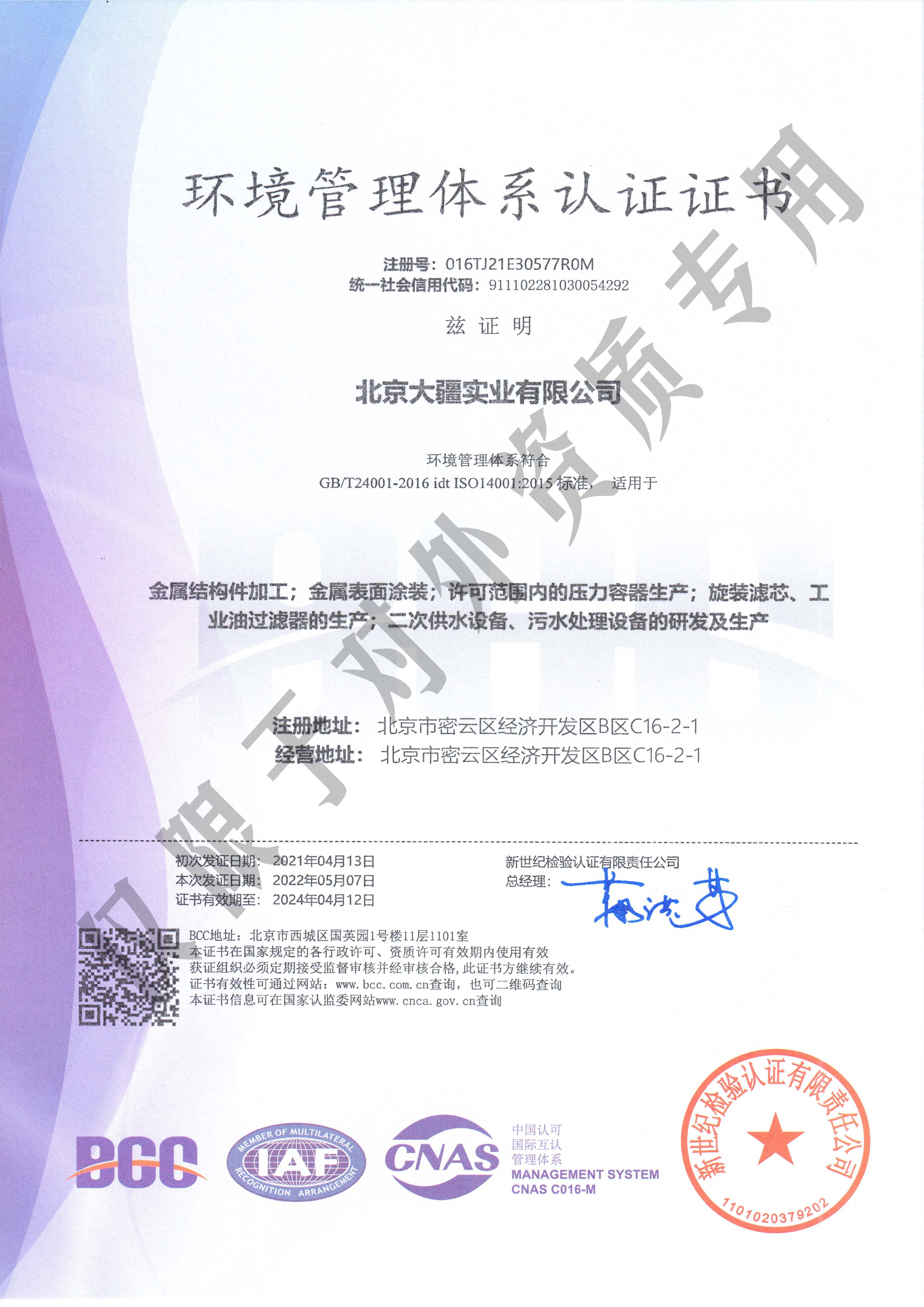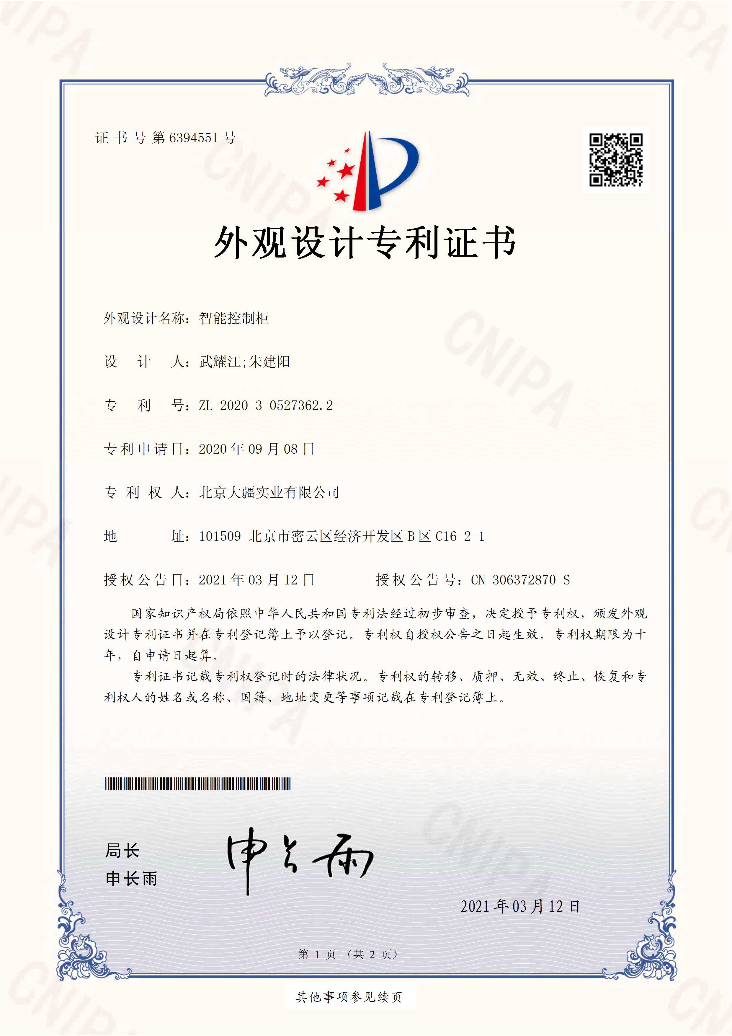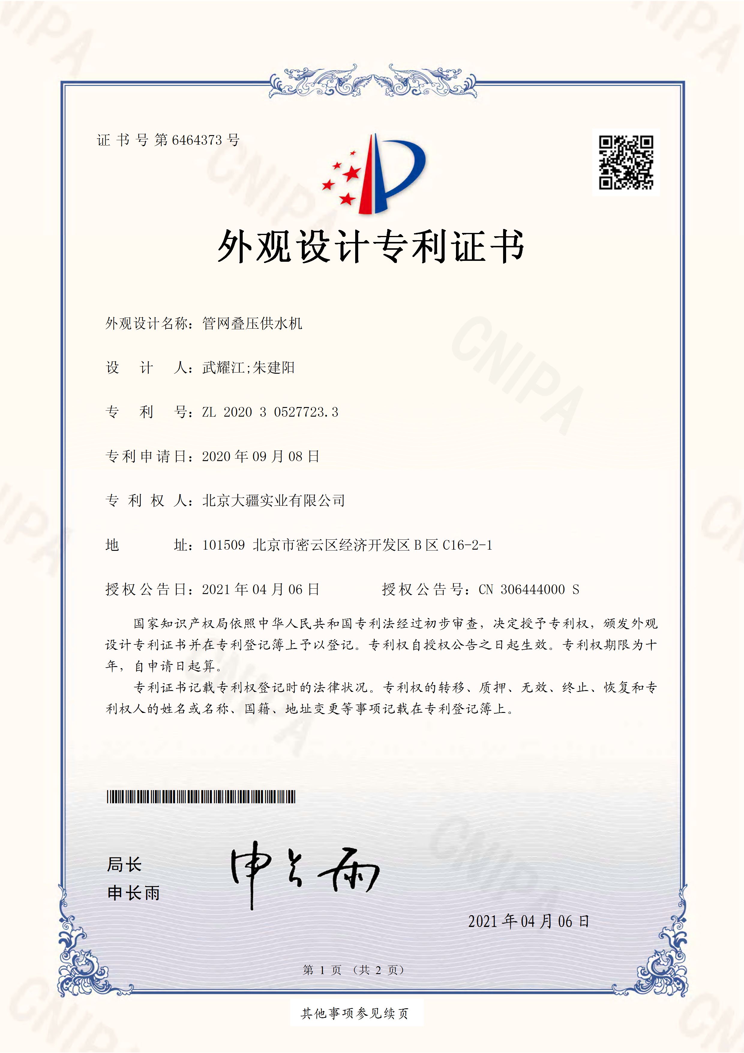 • 一种饮用水和二次供水集成直饮水设备-实用新型专利证书