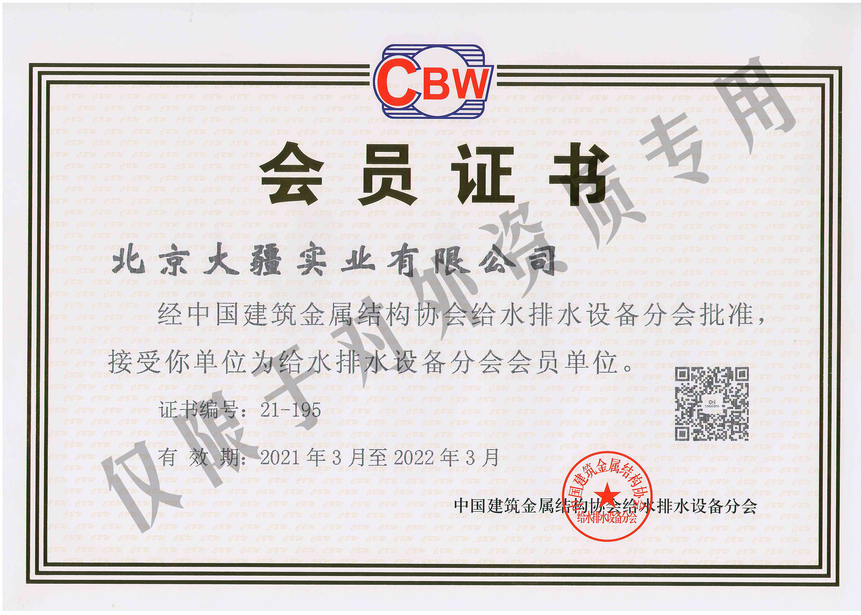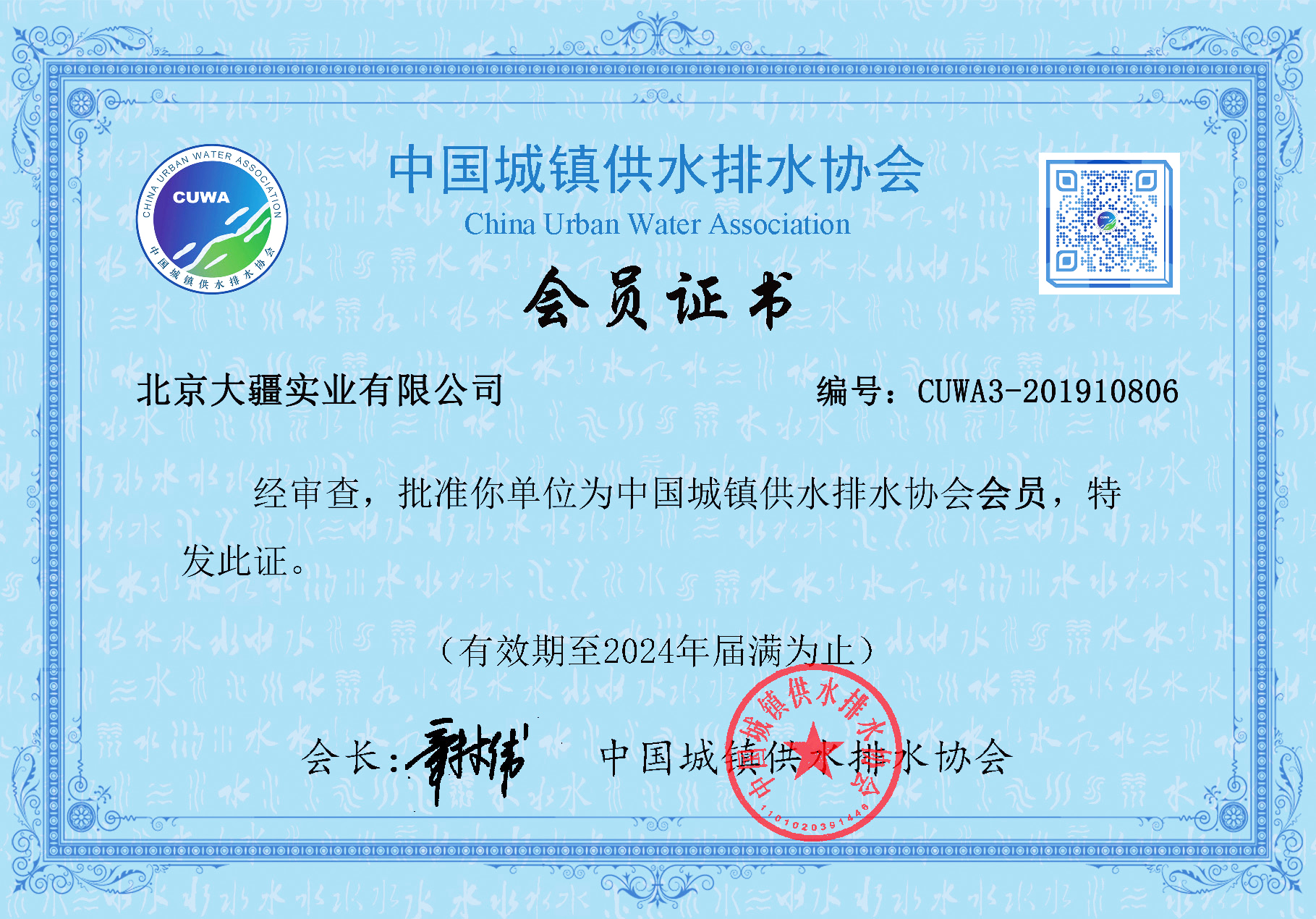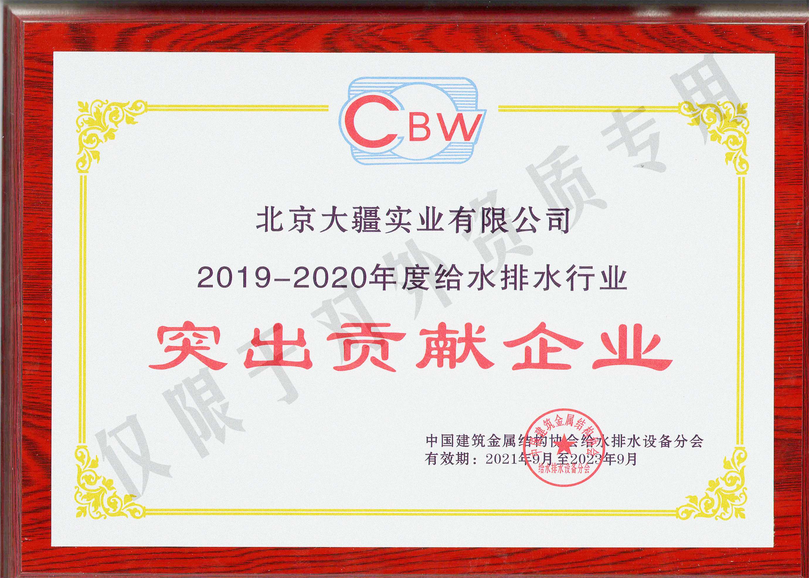 • 给水排水协会2019-2020年度给水排水行业突出贡献企业会证书