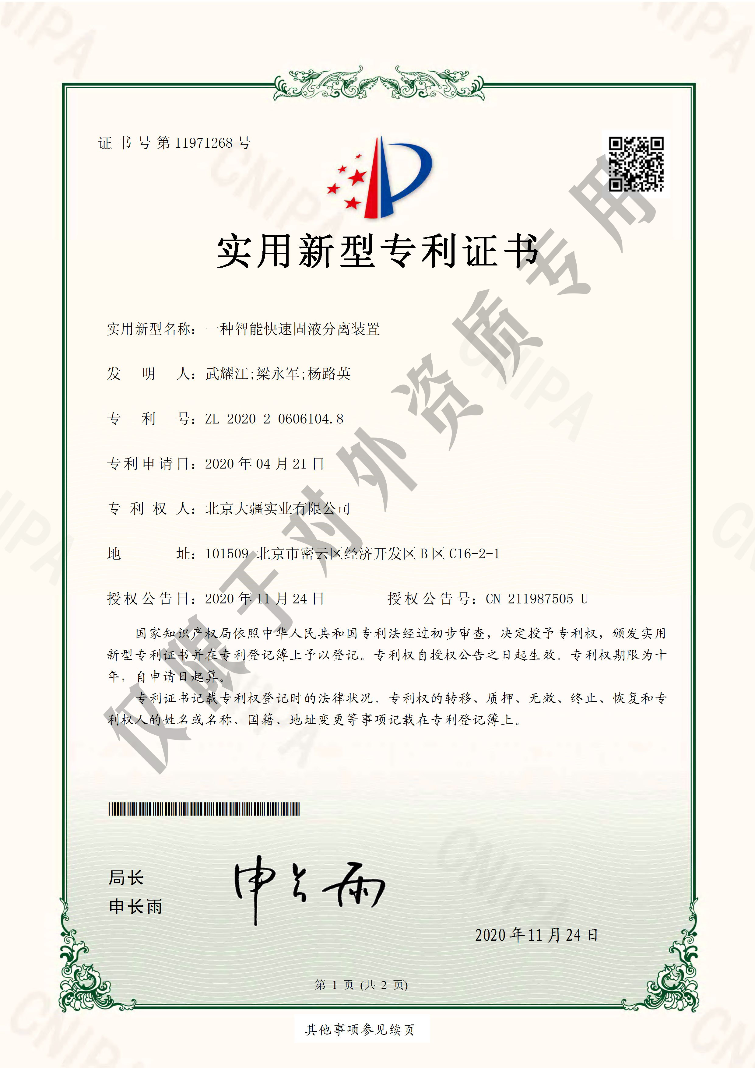 • 一种酸洗磷化废水自动化零排放撬装装置-实用新型专利证书