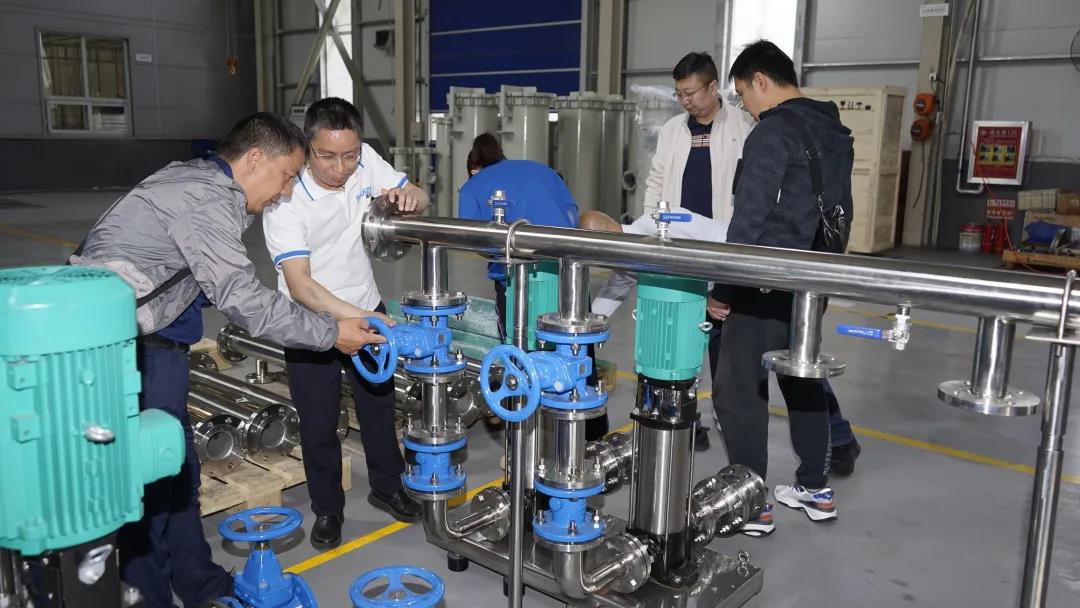 邯郸水务公司领导一行先后参观了公司一体化展厅,实地考察了疆汇泽二次供水设备的生产车间——机加中心、铆焊车间、喷涂车间,并重点考察了组装车间内的罐式无负压供水设备和箱式无负压供水设备,在生产现场了解管材管件等产品生产工艺及生产流程。